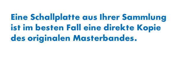 Schallplatten müssen nicht besser klingen. Sie können aber. Das macht einen Teil der Faszination des Schallplattensammelns aus. Es kommt auf die Generation des vorgelegenen Tonbandes, auf die Pressung selbst, den Erhaltungszustand und auf die Qualität der originalen Aufnahme an. Auf dem Medium sind alle Informationen enthalten. So wie es die Künstler ursprünglich beabsichtigt hatten. Ein analoges Signal ist unbeschnitten (im Gegensatz zu den meisten digitalen Formaten).